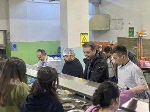 Yalova İl Milli Eğitim Müdürü Halil İbrahim Akmeşe, Prof. Dr. Necmettin Erbakan Sosyal Bilimler Lisesi pansiyonunda yatılı kalan öğrenciler, öğretmen ve yöneticilere iftar yemeğinde tezgah başına geçerek yemek servisi yaptı. Yalova İl Milli Eğitim Müdür yardımcıların da hazır bulunduğu iftar yemeğini öğrencilerle birlikte yiyen Yalova İl Milli Eğitim Müdürü Halil İbrahim Akmeşe. İftar sonrasında gençlerle sohbet ederek öğrencilerin taleplerini de not alarak her birine eğitim hayatlarında başarılar diledi. Yalova İl Milli Eğitim Müdürü Halil İbrahim Akmeşe, yaptığı açıklamada, “Prof. Dr. Necmettin Erbakan Sosyal Bilimler Lisesi pansiyonunda yatılı kalan öğrencilerimiz ile öğretmen ve yöneticilerimizle iftar programında bir araya gelerek sofralarında misafir olduk. İftar sonrasında sohbet etme imkanı bulduğumuz gençlerimizin taleplerini not aldık. Öğrencilerimize eğitim hayatlarında başarılar diliyor, onlara emek veren mesai arkadaşlarıma teşekkür ediyorum” dedi.