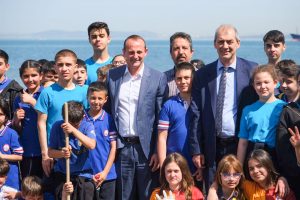 Çiftlikköy Şehit Ömer Halisdemir Ortaokulu’nun ‘Tertemiz Yarınlar Okullarda Başlar’ projesi kapsamında gerçekleşen sahil temizliğine katılan yaklaşık 100 öğrenci, Başkan Yele’ye büyük ilgi gösterdi.
