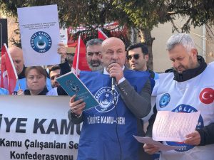 Türkiye Kamu-Sen İl Temsilcisi ve Türk Eğitim-Sen Yalova Şubesi Başkanı Mustafa Deviren, sendika üyeleriyle birlikte Cevdet Aydın Parkı’nda gerçekleştirdiği basın açıklamasıyla memur ve emekli maaş artışlarına sert tepki gösterdi..