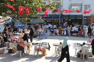 Çiftlikköy 23 Nisan Meydanı’nda ilk kez düzenlenen ‘Kadın Emeği Şenliği’ Çiftlikköylülerden büyük ilgi gördü. Kadınların ele emeği göz nuru ürünlerinin Çiftlikköylülerle buluştuğu şenlikte takılardan örme oyuncaklara, antikalardan giysilere, çantalardan takılara ve yiyeceklere kadar pek çok ürün yer aldı. Çiftlik Mahallesi Muhtarı Ayşenur Alacahan’ın katkılarıyla Çiftlikköy Belediyesi tarafından düzenlenen şenlikte kurulan 43 stantta, özel ürünler satışa sunuldu. Şenliği ziyaret eden Çiftlikköy Belediye Başkanı Adil Yele, tüm stantları tek tek gezerek girişimci kadınlarla sohbet ederken, ilk kez bu alanda düzenlenen etkinliğin devamının da geleceği müjdesini verdi. Etkinlikte yer alan tüm kadın girişimci ve üreticileri tebrik eden Başkan Yele, “Kadınlarımız hayatın her alanında var olduklarını, üreticiliklerini ve yaratıcılıklarını burada da başarılı üretimleriyle ve satışa sundukları ürünlerle gösterdiler. Her stantta ayrı bir emek ve yetenek var. Şenliğimizi Çiftlikköyümüzün farklı noktalarında veya belirli periyotlarla burada devam ettirebiliriz, bunun devamının geleceğinin müjdesini şimdiden vermiş olayım” diye konuştu. Şenliği ziyaret eden Çiftlikköylüler de, amigurumu adı verilen organik örme oyuncaklardan ahşap yakma sanatıyla yapılan portrelere, ev yapımı yemeklerden antika eşyalara kadar pek çok farklı ürünün yer aldığı stantlarda kadınların becerikli ellerinden çıkan ürünlere tam not verdi.