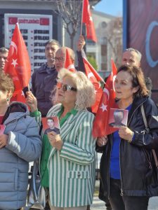 Açıklamanın ardından Özcan İla, Yalova şehitlerinin tek tek isimlerini okudu, dernek üyeleri ise her isim için ‘Burada’ dediler.