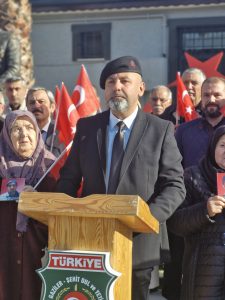 Dernek Başkanı Özcan İla yaptığı açıklamada, “Mehmet Akif'in, ‘Sen şehit oğlusun, incitme, yazıktır atanı. Verme dünyaları alsan da bu cennet vatanı’ dizelerini hatırlayalım. Hatırlayalım ki utanmadan, üzülmeden, düşünmeden bebek katili özgür kalsın, umut hakkı, ev hapsi verilsin diyenlere, İmralı canisini ülke gündemine sokup, barış elçisi gibi ilan edenlere hatırlatalım diye toplandık. Çok mu geriye gittik? O zaman 43 yıldır yaşadıklarımızı, verdiğimiz şehitlerimizi konuşalım. Bir vatan evladının toprağa nasıl düştüğünü, kaç kurşun yediğini, naaşlarının ne kadar sürede ailelerine ulaştığını konuşalım. Mesela ödedikleri bedeli konuşalım. Oğuz Kaan Usta'yı, Duabey Onur Öztürkmen'i, Şehit Semih Özbey'i konuşalım, videosunda yutkunduğu anı unuttunuz mu bu kadar çabuk onu konuşalım mesela. Hadi onlar askerdi serden ve yardan geçmişlerdi. Şehit Polis Fethi Sekin'i, Şehit Savcı Hakan Kılıç'ı, Şehit Öğretmenler Necmettin Yılmaz ve Aybüke Yalçın'ı, eli kanlı terör örgütünün menfur saldırılarında hayatını kaybeden sivil vatandaşlarımızı konuşalım. Zira hatırlamanıza ihtiyacımız var. Ya da hadi gelin, 2013'te yaşanan sözde çözüm sürecini konuşalım. Akil insanları, kazılan hendekleri, sokaklara kurulan bariyerleri ve o süreçte yitirdiğimiz 800'ün üzerinde şehidimizi. Terörle el sıkışılmayacağını, masaya oturulmayacağını, nasıl acı bir şekilde tecrübe ettiğimizi hatırlayalım. Ya da eli kanlı bebek katilinin meclise davet edilir edilmez, ‘tek anladığımız dil bu’ dercesine yaşattığı TUSAŞ saldırısını, TUSAŞ şehitlerimizi konuşalım. Bu kadar kısa sürede unutmuş olamazsınız” dedi.