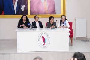 Yalova Üniversitesi Kadın ve Aile Araştırmaları Uygulama ve Araştırma Merkezi (YÜKAM), 8 Mart Dünya Emekçi Kadınlar Günü kapsamında anlamlı bir etkinliğe imza attı. Kamu kurumları, STK’lar ve öğrenci kulüpleriyle iş birliği içinde düzenlenen “Gençler Soruyor, Emekçi Kadınlar Anlatıyor” adlı Kadın ve Aile Söyleşileri etkinliği, katılımcılara güçlü aile yapılarının toplumsal güç üzerindeki etkisini anlattı. Etkinliğe, Yalova Vali Yardımcısı İdil Özdemir Doğan ile Aile ve Sosyal Hizmetler İl Müdürü Arif Laçin’in yanı sıra Yalova Üniversitesi yönetimi ve önemli konuklar katıldı. Açılış konuşmalarını YÜKAM Müdürü Prof. Dr. Elif Yüksel Oktay, Kent Konseyi Başkanı Kenan Engin ve Yalova Üniversitesi Rektör Yardımcısı ve İktisadi ve İdari Bilimler Fakültesi Dekanı Prof. Dr. Taner Tatar yaptı. Konuşmalarında, ailenin ve kadının toplumdaki yerine ve önemine vurgu yapıldı. İlk konuşmayı, Aile ve Sosyal Hizmetler Bakanlığı Yalova İl Müdür Yardımcısı Sümeyye Yanık Doğan gerçekleştirdi. Doğan, 2025’in "Aile Yılı" kapsamında “Ailemiz Geleceğimiz” başlıklı bir sunum yaparak, ailenin bireylerin yaşamındaki önemine dikkat çekti. Etkinliğin devamında, farklı sektörlerden gelen 4 kadın konuşmacı, çalışma hayatına giriş hikayelerini ve kadın olarak yaşadıkları zorlukları gençlere aktardı. Kadın Kuaförü Zeynep Babuşçu, vinç/kepçe operatörü Nafiye Madenci, Uzak Yol Gemi Kaptanı Pınar Öz ve girişimci Nazlı Uslu, iş-aile yaşam dengesini nasıl kurduklarını ve güçlü bir aile yapısının onlara nasıl güç kattığını anlattılar. Konuşmacılar, aile desteğinin her türlü zorluğu aşmalarına yardımcı olduğunu vurguladılar. Etkinlik, Aile ve Sosyal Hizmetler Bakanlığı Yalova İl Müdürlüğü, Yalova Kent Konseyi, Kadın Meclisi, Kadın ve Çocuk Hakları Koruma ve Yardımlaşma Derneği (KAÇO-DER), Birlikte Kanserle Mücadele Derneği (BİKAMDER), Türkiye Emekli Astsubaylar Derneği (TEMAD) Yalova İl Başkanlığı, Yalova Kanser Hastaları Derneği (YAKHAD) ve Yalova Çiftlikköy Emeklileri Yardımlaşma ve Dayanışma Derneği’nin yanı sıra üniversitemizin çeşitli öğrenci kulüpleri tarafından da desteklendi. Programda, NOVA Sanat Evi’nden Şule Özel Çevik’in el emeği ürünleri sergilendi. Etkinliğin sunuculuğunu ise Çalışma Ekonomisi ve Endüstri İlişkileri Bölümü öğrencilerinden Seçil Taşdemir üstlendi. Program, öğrencilerin soruları ve konuşmacıların cevaplarıyla sona erdi.