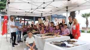 Çiftlikköy Belediyesi’nin Çevre Koruma Haftası etkinlikleri kapsamında Engelsiz Kafe bahçesinde gerçekleştirilen ‘Geleneksel Türk Kağıdı Atölyesi’ne katılan minik öğrenciler, kendi elleriyle kağıt hamurundan geleneksel Türk kağıdı üreterek güzel bir deneyim yaşadılar. Dut ağacı liflerinden oluşturulan kağıt hamurunun kullanıldığı atölye çalışmasında, Yalova Belediyesi İbrahim Müteferrika Kağıt Müzesi Sorumlusu ve Kültür Bakanlığı Sanatçısı Aytekin Vural, Kağıt Üretim Teknikeri Fatih Karadavut ve Kaligrafi Sanatçısı Fatma Kebude, Çiftlikköy GSD İlkokulu’nun birinci sınıf öğrencilerine nasıl kağıt yapıldığını uygulamalı olarak anlattı. Minik öğrenciler, kağıt üretim teknikeri Fatih Karadavut’la birlikte kağıt hamurundan organik kağıtlar üretirken, Kaligrafi Sanatçısı Fatma Kebude de minik öğrencilerin kağıt üretim teknikeri eşliğinde ürettikleri kağıtlara kaligrafik olarak isimlerini yazdı. Öğrencilere Osmanlı’da ilk kağıt üretiminin yapıldığı yerlerden birisi olan Yalova’da kağıt yapım tarihini anlatan kitapla birlikte, isimlerinin yazılı olduğu el yapımı kağıtlar da hediye edildi. Çiftlikköy Belediye Başkanı Adil Yele, Çevre Koruma Haftası’na değer katacak etkinlikler gerçekleştirdiklerini ifade ederek, “Miniklerimizi organik kağıtla ve kaligrafi sanatımızla buluşturduğumuz bu atölye çalışmasına vatandaşlarımız da ilgi gösterdi. Kağıdın ülkemizde bundan yüzyıllar önce 1745’te Yalova’daki kağıthanelerde üretildiğini öğrendiler. Çevre Haftası etkinliklerimiz çok güzel ilerliyor, hafta boyunca organizasyonlarımız devam edecek” diye bilgi verdi.