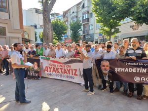 Tahran’da uğradığı suikast sonucu şehit edilen Hamas Siyasi Büro Başkanı İsmail Haniye için Yalova Merkez Camisi’nde ikindi namazını müteakip gıyabi cenaze namazı kılındı. Burada toplanan kalabalık yaşanan suikasta tepki gösterdi. Namaz öncesinde konuşma yapan Yalova Gönüllü Sivil Toplum Kuruluşları Platformu Sözcüsü Hacı Ömer Anlayışlı, “Bu gece sabaha karşı, Filistin direnişinin sembolü olan Hamas lideri İsmail Heniye, bir suikast neticesinde öldürülen İran Cumhurbaşkanının yerine seçilen yeni cumhurbaşkanının yemin töreni için bulunduğu İran’ın başkenti Tahran’da Siyonist İsrail’in füze saldırısı neticesinde şehit edildi. İsmail Haniye Ramazan ayının son günlerinde alçak Siyonistler tarafından üç evladı ve üç torunu şehit edildiğinde şöyle demişti; “Benim çocuklarımın kanı, diğer mücahitlerin kanından daha değerli değildir, Rabbim bana mübarek Ramazan Bayramında şehit babası olma hediyesi verdi, daha ne olsun ki...” Yarabbi; bu nasıl bir iman ve teslimiyettir. Şehadetin mübarek olsun ey güzel insan. Şundan emin ol ki; seni şehit edenler, senden uzun yaşamayacaklar. Senin ömrün bitti ama mücadelen, Gazze zulümden kurtulana, Mescidi Aksa özgürleşene ve bağımsız Filistin kurulana dek bitmeyecektir. Artık tam anlamıyla söz bittiği yerdeyiz. Ailesi ve en yakınlarını Rabbine kurban vermesi nedeniyle “Ebu’ş Şüheda” yani “şehitlerin babası” olarak nitelendirdiğimiz büyük komutan ve aziz lider İsmail Heniye’nin şehadeti büyük bir dönüm noktasıdır. Şehit veren değil şehit kazanan bir mektebin öğrencileri olarak çok iyi biliyoruz ki; İsmail Heniye’nin şehadeti bir son değil muazzam bir başlangıçtır. İsrail rejimi, İsmail Heniye’yi şehit ederek hiçbir şey başaramamıştır, ancak aziz komutan Heniye çok arzuladığı ve hasretle beklediği şehadet makamına kavuşmuştur. Liderleri şehit olan bir hareket asla yenilmez. Dün Şeyh Ahmed Yasin’i, Abdülaziz Rantisi’yi, ve daha nice değerli evladını şehit verse de sarsılmayan bilakis daha da büyüyen ve gönüllere kök salan Filistin mücadelesi bugün de mağlup olmayacaktır. Bizi ölümle korkutmak isteyenler çok iyi bilmelidir ki; biz şehadete aşığız! Biz şehadet aşkıyla yanıp tutuşuyoruz! Biz Evlad-ı Fatihan’ız! Aziz hazirun… Hamas lideri İsmail Heniye bir konuşmasında “Milyonlarca şehitle yürüyoruz Kudüs’e” ifadesini kullanmış ve bu davanın savaşçılarının sadece yerin üstüne olmadığını vurgulamıştı. Bugün bizler çok iyi biliyoruz ki; aziz komutan İsmail Heniye erişmiş olduğu şehadet makamında Kudüs’ün ve tüm Filistin’in özgürlüğü için savaşmaya devam edecektir. Bizler de yüreği yanık Anadolu insanı olarak söz veriyoruz ki; şehit lider İsmail Heniye’nin aziz hatırasına layık bir şekilde yerin üstünde savaşacağız. Bir an olsun durmayacağız. Bir an olsun vazgeçmeyeceğiz. Bulunduğumuz her konumu İsrail rejimine karşı bir cephe bileceğiz. Cephelerden asla kaçmayacağız. İslam coğrafyası ve yeryüzünün tamamını Siyonistler için yaşanılmaz bir hale getireceğiz. İsmail Heniye’nin şehadetiyle daha da güçlenen Kudüs ve Filistin davamıza sımsıkı sarılacağız. Gün yas tutma günü değildir. Gün acı çekme günü değildir. Gün intikam günüdür. Siyonist İsrail rejimi ve onun tüm işbirlikçilerine karşı birleşme ve ahidleşme günüdür. Burada İslam ülkelerinin liderlerine de seslenmek istiyoruz. Ey İslam ülkelerinin liderleri; hepimiz bir olup tükürsek İsrail boğulur. Silkinin ve kendinize gelin. Hristiyanları ve Yahudileri kendinize dost edinmeyin. Aranızdaki suni ayrılıkları bir kenara bırakın ve Siyonist İsrail’e karşı birleşin. “Birbirinizi sevmedikçe iman etmiş olamazsınız, iman etmedikçe de cennete giremezsiniz.” Önce Müslümanlar olarak birbirinizi sevin. Sevin ki; birleşmenin önündeki en büyük engel ortadan kalksın. Müslümanlar; birbirini gerçek manada sevdiklerinde, mesele kökünden çözülecektir. Bu sevgi olursa, aradaki nifak tohumları kuruyacak, herkes birbirini doğru anlayacak, sınırlar kalkacak, insanlar kucaklaşacak, gönüller birleşecektir. Bu birleşme olunca; Müslümanlar birbirlerine yaslanacak, birlikte büyüyecek ve birlikte güçleneceklerdir. İşte o zaman, dünya beş’ten büyük olacak, adalet üzerine yeni bir dünya kurulacaktır. İşte o zaman İsrail’e öyle bir tokat vuracağız ki, bütün hayatı Gazze şeridi gibi gözlerinin önünden geçecektir. Allah yâr ve yardımcımız olsun. Allah’a emanet olun” dedi.