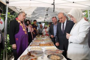 Önceki gün Halk Eğitim Merkezi Konferans Salonu’nda Yalova Valiliği koordinesinde gerçekleştirilen ‘Yöresel Yemeklerin Markalaştırılması’ konulu panelin sonrasında ‘Asırlık Tariflerle Yalova Menüsü’ yemek sunumları, Yürüyen Köşk otopark alanında yapıldı. Yalova Valisi Muammer Erol ve protokol üyelerinin hazır bulunduğu programda İl Kültür ve Turizm Müdürü Ziya Karatekin açıklamalarda bulundu. Karatekin, “Türk mutfağının gelenekselleşmesiyle birlikte tanıtım anlamında dünyadaki yerini alacağına inanıyoruz. Tabi illerde bu çalışmalar içerisinde kendi illerine yönelik mutfaklarını markalaştırmaya çalışırlarsa zannediyoruz bu noktada Türk mutfağının dünyaya tanıtılmasında çok önemli bir yol kat ederiz. Biz de bu vesileyle farklı yerlerden gelmiş hatta imparatorluk coğrafyasından gelip ilimize yerleşik bulunan insanlarımızın taşıdıkları yemek kültürünü de bir envanter olarak gerek görselleriyle gerek tarifleriyle birlikte bir kitap haline getirmek suretiyle bunun bilinir hale gelmesini sağlamak istiyoruz. İnşallah bu çalışmaları ilerleyen günlerde başlatacağız. Türkiye’yi dolaşmak suretiyle bu yemek çeşitlerimizi hatta Yalova’mızda üretilen tarım ürünlerimizi, mutfağımıza katkı sağlayan bu ürünleri bir ön rapor haline getireceğiz. Zannediyorum önümüzdeki yıl tamamlamış olursak daha somut bir çalışmayla karşınızda olacağız. Bu çalışmaya katkı veren İl Özel İdaremiz, Yalova Belediyesi, Uygulama Otelimiz ve Yalova Üniversitesi gibi paydaş kurum ve kuruluşlarımıza çok teşekkür ediyorum” dedi. İl Kültür ve Turizm Müdürü Ziya Karatekin’in konuşmasının ardından Yalova Valisi Muammer Erol ve protokol üyeleri yöresel lezzetlerin bulunduğu stantları gezerek, yemekler hakkında bilgi aldılar.